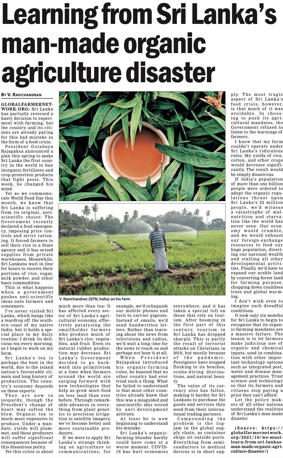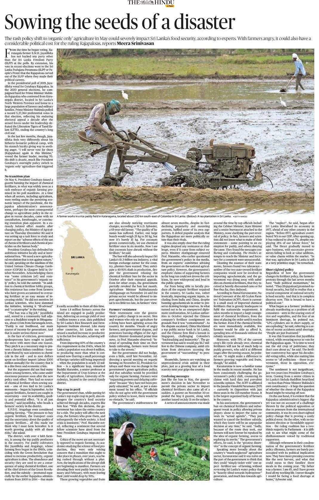 (2023) Onko luomuviljelypolitiikka syynä Sri Lankan talouskriisiin? Mikä on totuus? Lähde: விகடன் | PDF-varmuuskopio