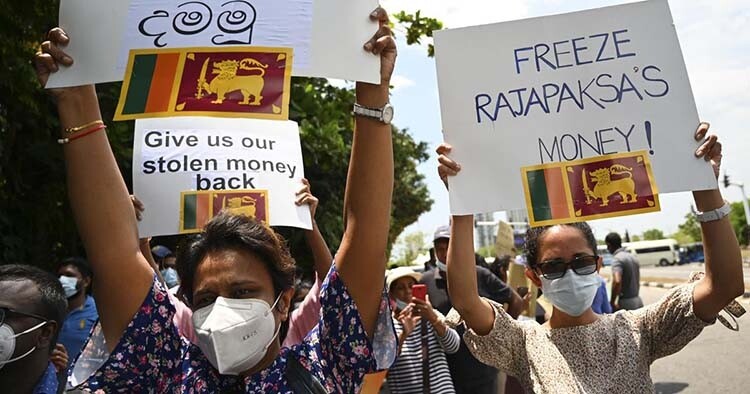 Maan paettuaan mellakoiden vuoksi Rajapaksa väitti, että Kansainvälisen valuuttarahaston (IMF) pelastuspaketti oli ainoa vaihtoehto